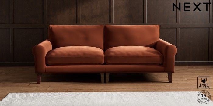 6.12.1 Buy Palermo Relaxed Sit 4 Seater Sofa Plush Velvet Easy Clean Ginger Orange Tapered - Dark Brown from the Next UK online shop Click here to use our accessible website