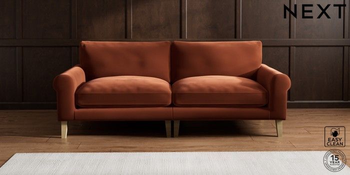 6.12.1 Buy Palermo Relaxed Sit 4 Seater Sofa Plush Velvet Easy Clean Ginger Orange Tapered - Light from the Next UK online shop Click here to use our accessible website
