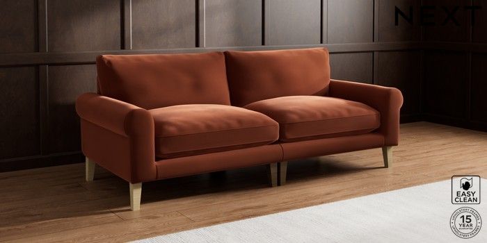 7.0.3 Buy Palermo Relaxed Sit 4 Seater Sofa Plush Velvet Easy Clean Ginger Orange Tapered - Light from the Next UK online shop Click here to use our accessible website