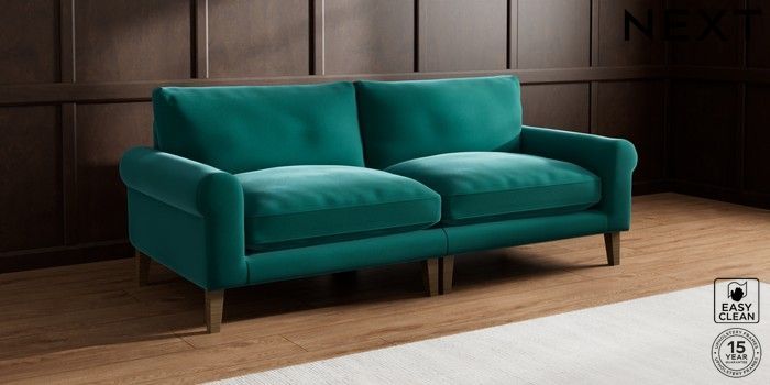 7.0.3 Buy Palermo Relaxed Sit 4 Seater Sofa Plush Velvet Easy Clean Juniper Green Tapered - Mid from the Next UK online shop Click here to use our accessible website