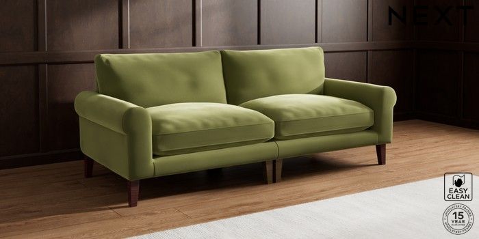 7.0.3 Buy Palermo Relaxed Sit 4 Seater Sofa Plush Velvet Easy Clean Mid Olive Green Tapered - Dark Brown from the Next UK online shop Click here to use our accessible website