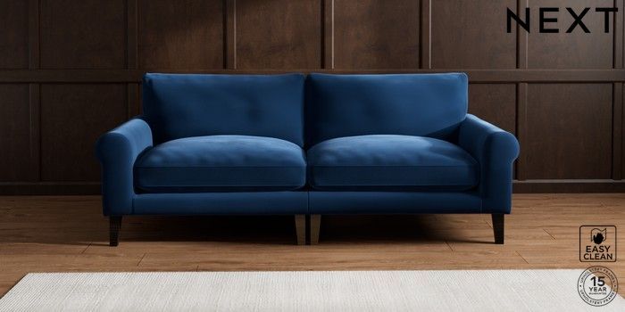 6.12.1 Buy Palermo Relaxed Sit 4 Seater Sofa Plush Velvet Easy Clean Navy Blue Tapered - Dark from the Next UK online shop Click here to use our accessible website