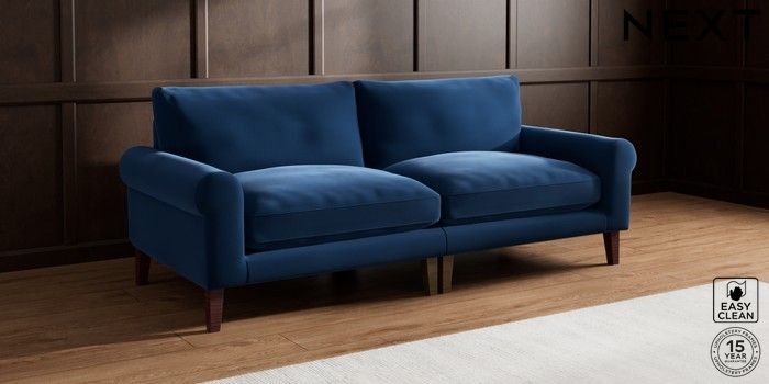 7.0.3 Buy Palermo Relaxed Sit 4 Seater Sofa Plush Velvet Easy Clean Navy Blue Tapered - Dark Brown from the Next UK online shop Click here to use our accessible website