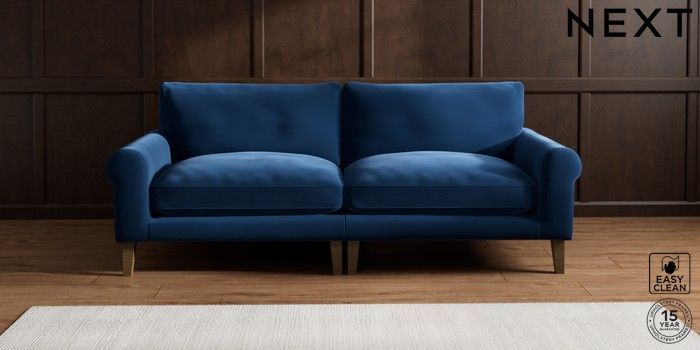 6.12.1 Buy Palermo Relaxed Sit 4 Seater Sofa Plush Velvet Easy Clean Navy Blue Tapered - Mid from the Next UK online shop Click here to use our accessible website