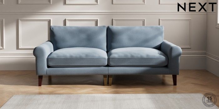6.12.1 Buy Palermo Relaxed Sit 4 Seater Sofa Relaxed Linen Look Mid Blue Tapered - Dark Brown from the Next UK online shop Click here to use our accessible website