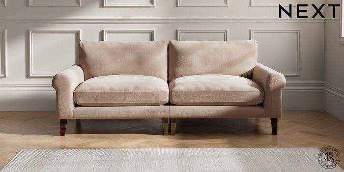 6.12.1 Buy Palermo Relaxed Sit 4 Seater Sofa Relaxed Linen Look Mid Natural Tapered - Dark Brown from the Next UK online shop Click here to use our accessible website