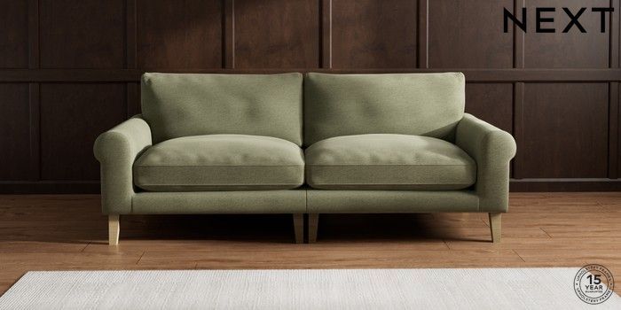 6.12.1 Buy Palermo Relaxed Sit 4 Seater Sofa Ripple Chenille Mid Moss Green Tapered - Light from the Next UK online shop Click here to use our accessible website
