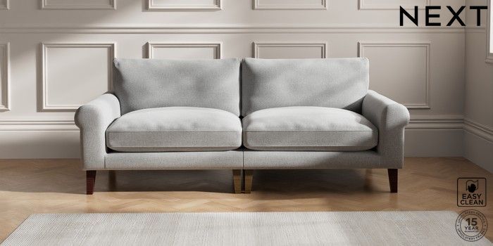 6.12.1 Buy Palermo Relaxed Sit 4 Seater Sofa Tweedy Blend Easy Clean Light Silver Grey Tapered - Dark Brown from the Next UK online shop Click here to use our accessible website