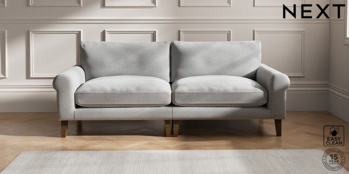 6.12.1 Buy Palermo Relaxed Sit 4 Seater Sofa Tweedy Blend Easy Clean Light Silver Grey Tapered - Mid from the Next UK online shop Click here to use our accessible website