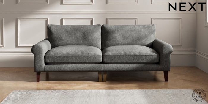 6.12.1 Buy Palermo Relaxed Sit 4 Seater Sofa Tweedy Chenille Dark Grey Tapered - Dark Brown from the Next UK online shop Click here to use our accessible website