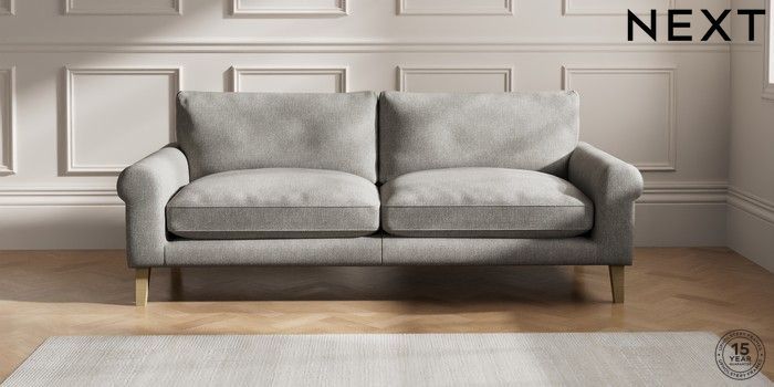 6.12.1 Buy Palermo Relaxed Sit 4 Seater Sofa Tweedy Chenille Mid Grey Tapered - Light from the Next UK online shop Click here to use our accessible website