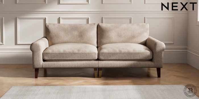 6.12.1 Buy Palermo Relaxed Sit 4 Seater Sofa Tweedy Chenille Mid Natural Tapered - Dark Brown from the Next UK online shop Click here to use our accessible website