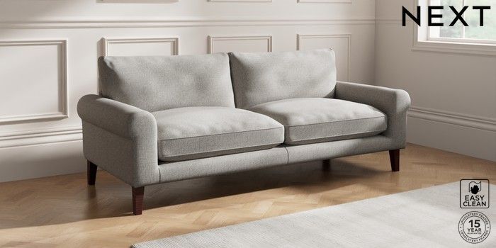 7.0.3 Buy Palermo Relaxed Sit 4 Seater Sofa Woven Chenille Easy Clean Light Grey Tapered - Dark Brown from the Next UK online shop Click here to use our accessible website