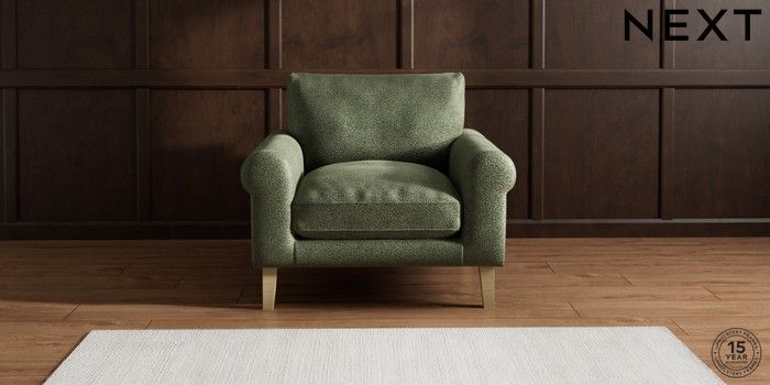 6.12.1 Buy Palermo Relaxed Sit Armchair Boucle Chenille Dark Moss Green Tapered - Light from the Next UK online shop Click here to use our accessible website