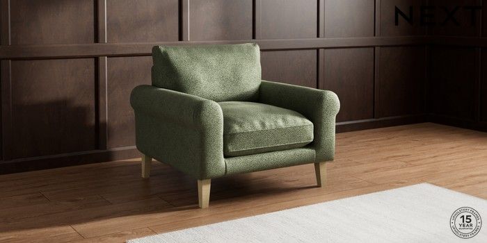 7.0.3 Buy Palermo Relaxed Sit Armchair Boucle Chenille Dark Moss Green Tapered - Light from the Next UK online shop Click here to use our accessible website