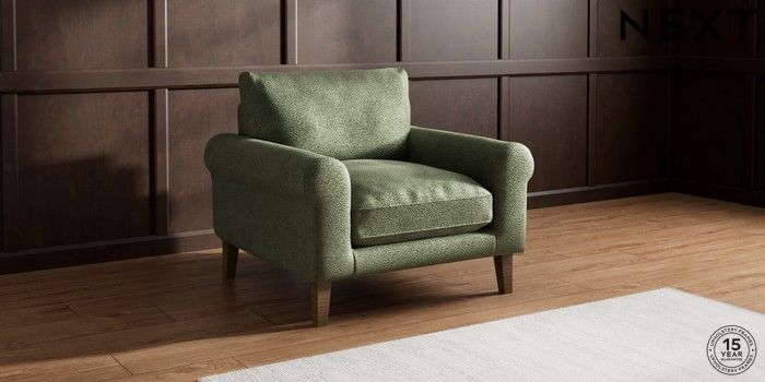 7.0.3 Buy Palermo Relaxed Sit Armchair Boucle Chenille Dark Moss Green Tapered - Mid from the Next UK online shop Click here to use our accessible website