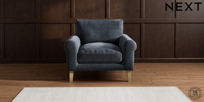 6.12.1 Buy Palermo Relaxed Sit Armchair Boucle Chenille Dark Slate Blue Tapered - Light from the Next UK online shop Click here to use our accessible website