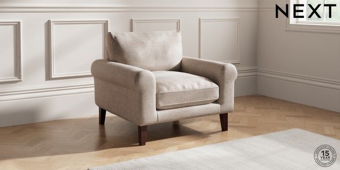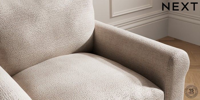 7.0.3 Buy Palermo Relaxed Sit Armchair Boucle Chenille Light Natural Tapered - Dark Brown from the Next UK online shop Click here to use our accessible website