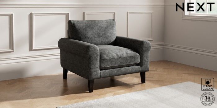 7.0.3 Buy Palermo Relaxed Sit Armchair Boucle Weave Easy Clean Charcoal Grey Tapered - Dark from the Next UK online shop Click here to use our accessible website