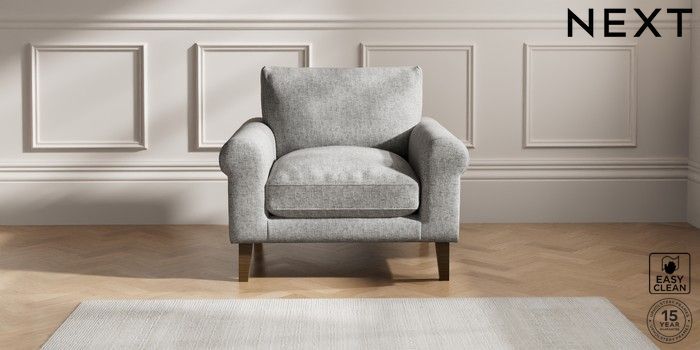 6.12.1 Buy Palermo Relaxed Sit Armchair Chunky Boucle Easy Clean Light Grey Tapered - Mid from the Next UK online shop Click here to use our accessible website