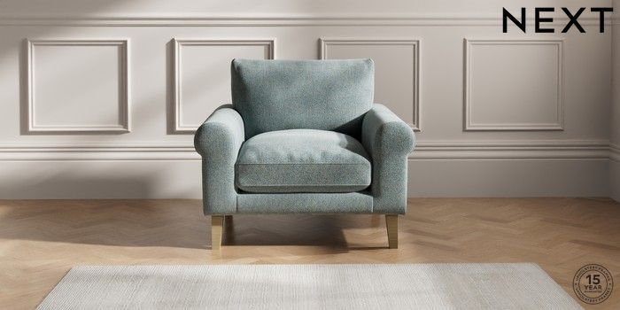 6.12.1 Buy Palermo Relaxed Sit Armchair Chunky Marl Mid Blue Tapered - Light from the Next UK online shop Click here to use our accessible website