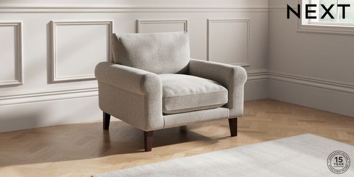7.0.3 Buy Palermo Relaxed Sit Armchair Chunky Weave Dove Grey Tapered - Dark Brown from the Next UK online shop Click here to use our accessible website
