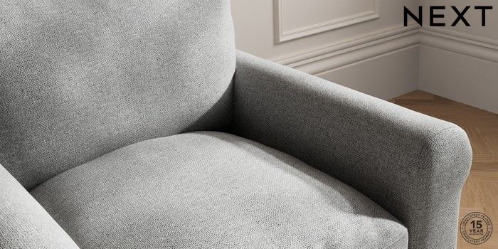 7.0.3 Buy Palermo Relaxed Sit Armchair Chunky Weave Mid Grey Tapered - Dark Brown from the Next UK online shop Click here to use our accessible website