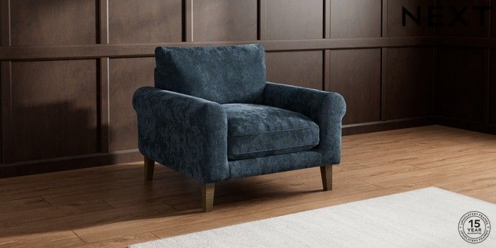 7.0.3 Buy Palermo Relaxed Sit Armchair Distressed Velour Midnight Blue Tapered - Mid from the Next UK online shop Click here to use our accessible website
