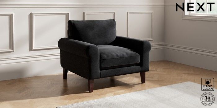 7.0.3 Buy Palermo Relaxed Sit Armchair Fine Chenille Easy Clean Black Tapered - Dark Brown from the Next UK online shop Click here to use our accessible website