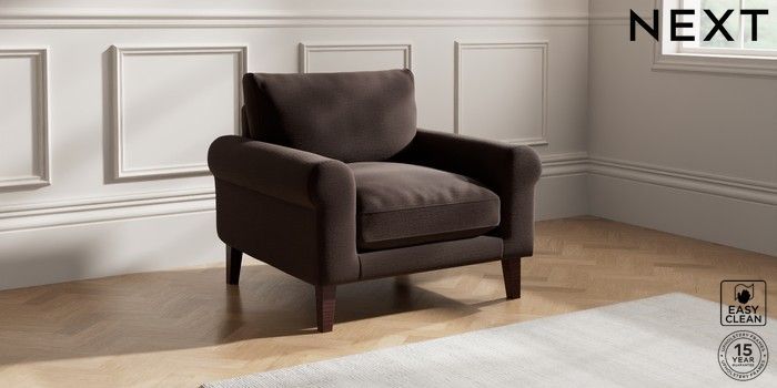 7.0.3 Buy Palermo Relaxed Sit Armchair Fine Chenille Easy Clean Chocolate Brown Tapered - Dark Brown from the Next UK online shop Click here to use our accessible website