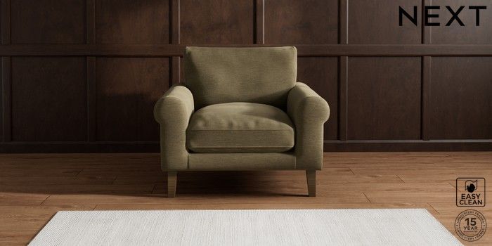 6.12.1 Buy Palermo Relaxed Sit Armchair Fine Chenille Easy Clean Dark Moss Green Tapered - Mid from the Next UK online shop Click here to use our accessible website