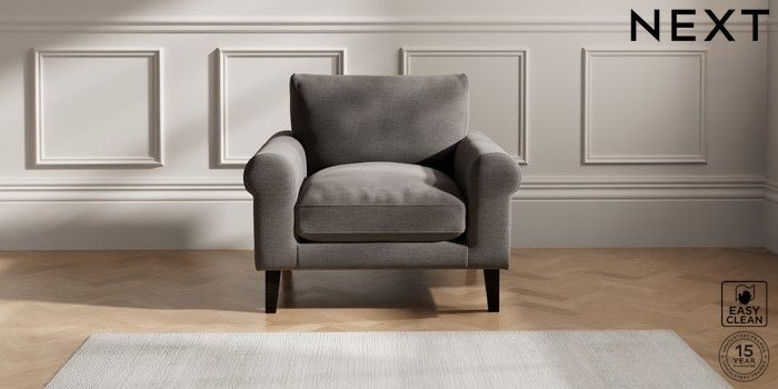 6.12.1 Buy Palermo Relaxed Sit Armchair Fine Chenille Easy Clean Dark Smoke Grey Tapered - Dark from the Next UK online shop Click here to use our accessible website