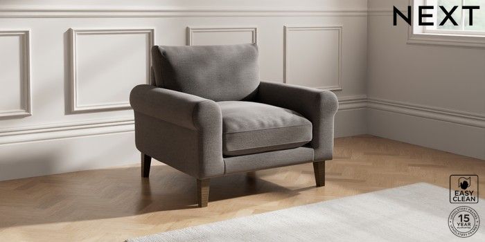 7.0.3 Buy Palermo Relaxed Sit Armchair Fine Chenille Easy Clean Dark Smoke Grey Tapered - Mid from the Next UK online shop Click here to use our accessible website