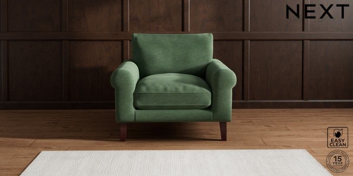 6.12.1 Buy Palermo Relaxed Sit Armchair Fine Chenille Easy Clean Mid Khaki Green Tapered - Dark Brown from the Next UK online shop Click here to use our accessible website