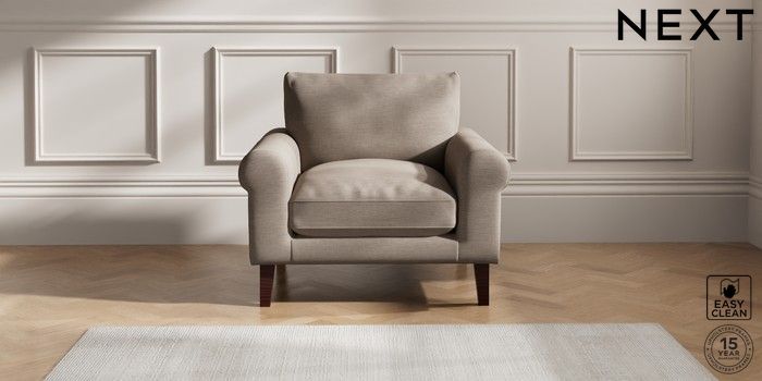 6.12.1 Buy Palermo Relaxed Sit Armchair Fine Chenille Easy Clean Mid Taupe Brown Tapered - Dark Brown from the Next UK online shop Click here to use our accessible website