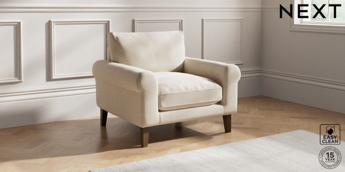 7.0.3 Buy Palermo Relaxed Sit Armchair Fine Chenille Easy Clean Oyster Tapered - Mid from the Next UK online shop Click here to use our accessible website
