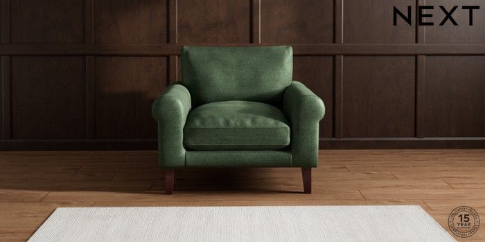 6.12.1 Buy Palermo Relaxed Sit Armchair Luxe Chenille Dark Green Tapered - Dark Brown from the Next UK online shop Click here to use our accessible website