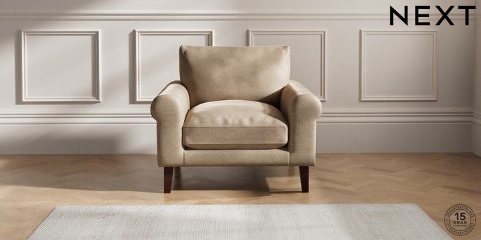 6.12.1 Buy Palermo Relaxed Sit Armchair Luxe Chenille Mid Camel Beige Tapered - Dark Brown from the Next UK online shop Click here to use our accessible website