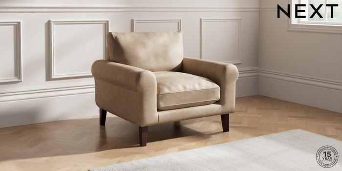 7.0.3 Buy Palermo Relaxed Sit Armchair Luxe Chenille Mid Camel Beige Tapered - Dark Brown from the Next UK online shop Click here to use our accessible website