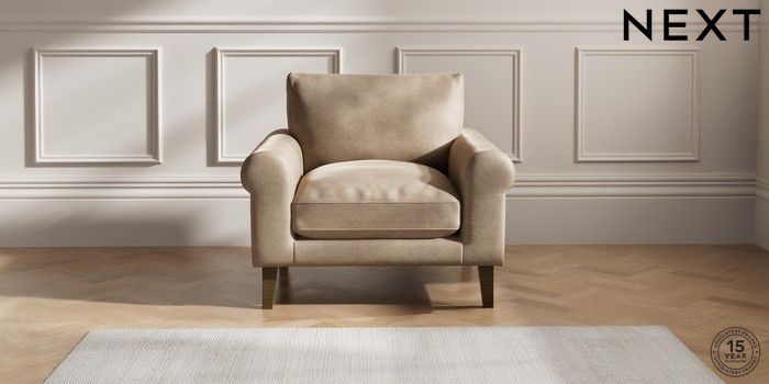 6.12.1 Buy Palermo Relaxed Sit Armchair Luxe Chenille Mid Camel Beige Tapered - Mid from the Next UK online shop Click here to use our accessible website