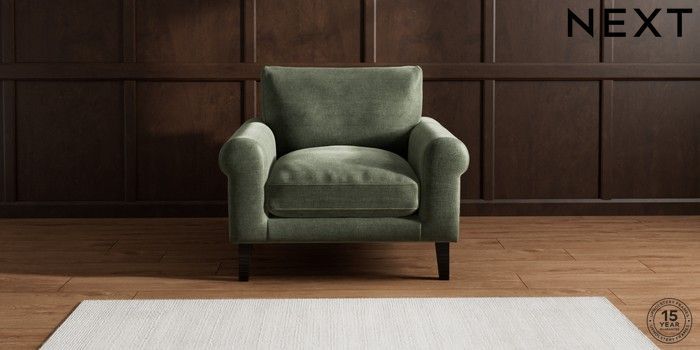 6.12.1 Buy Palermo Relaxed Sit Armchair Luxe Chenille Mid Green Tapered - Dark from the Next UK online shop Click here to use our accessible website