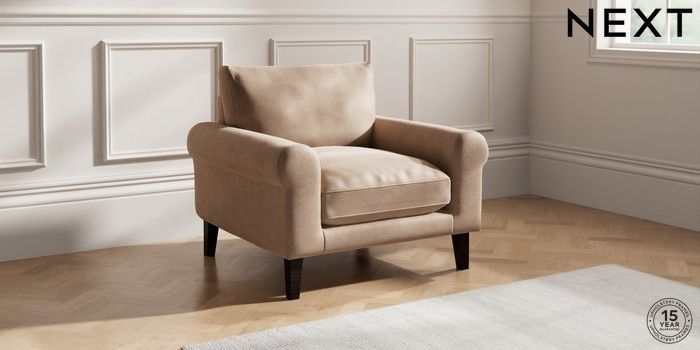 7.0.3 Buy Palermo Relaxed Sit Armchair Luxe Chenille Mid Natural Tapered - Dark from the Next UK online shop Click here to use our accessible website