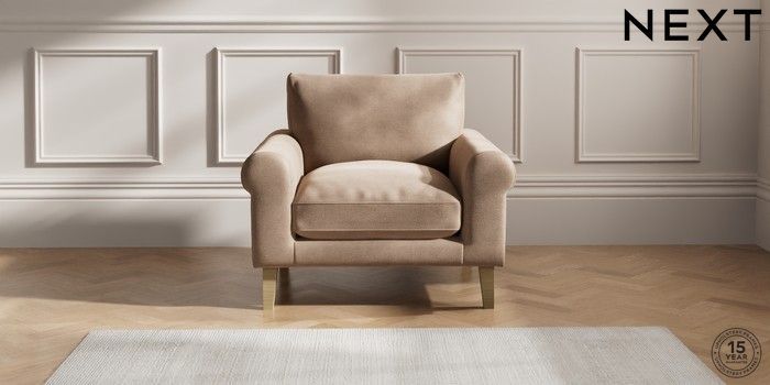 6.12.1 Buy Palermo Relaxed Sit Armchair Luxe Chenille Mid Natural Tapered - Light from the Next UK online shop Click here to use our accessible website
