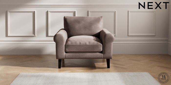 6.12.1 Buy Palermo Relaxed Sit Armchair Luxe Chenille Mink Brown Tapered - Dark from the Next UK online shop Click here to use our accessible website