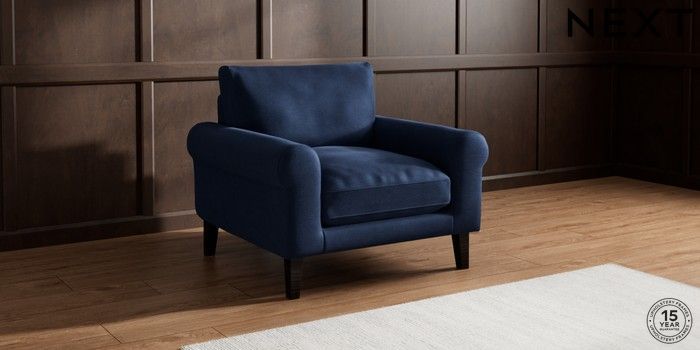 7.0.3 Buy Palermo Relaxed Sit Armchair Luxe Chenille Navy Blue Tapered - Dark from the Next UK online shop Click here to use our accessible website