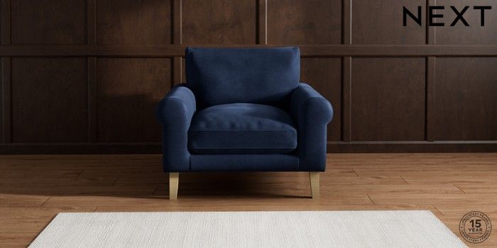6.12.1 Buy Palermo Relaxed Sit Armchair Luxe Chenille Navy Blue Tapered - Light from the Next UK online shop Click here to use our accessible website