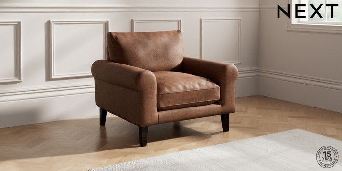 7.0.3 Buy Palermo Relaxed Sit Armchair Monza Faux Leather Easy Clean Chestnut Brown Tapered - Dark from the Next UK online shop Click here to use our accessible website