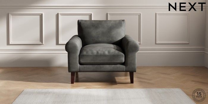 6.12.1 Buy Palermo Relaxed Sit Armchair Monza Faux Leather Easy Clean Dark Grey Tapered - Dark Brown from the Next UK online shop Click here to use our accessible website