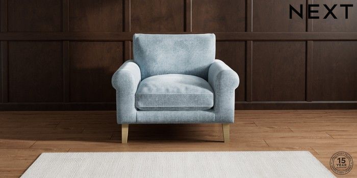 7.2.6 Buy Palermo Relaxed Sit Armchair Plush Chenille Light Blue Tapered - Light from the Next UK online shop Click here to use our accessible website