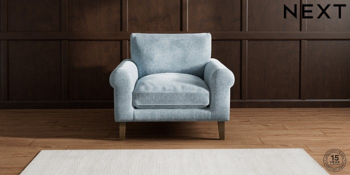 7.2.6 Buy Palermo Relaxed Sit Armchair Plush Chenille Light Blue Tapered - Mid from the Next UK online shop Click here to use our accessible website